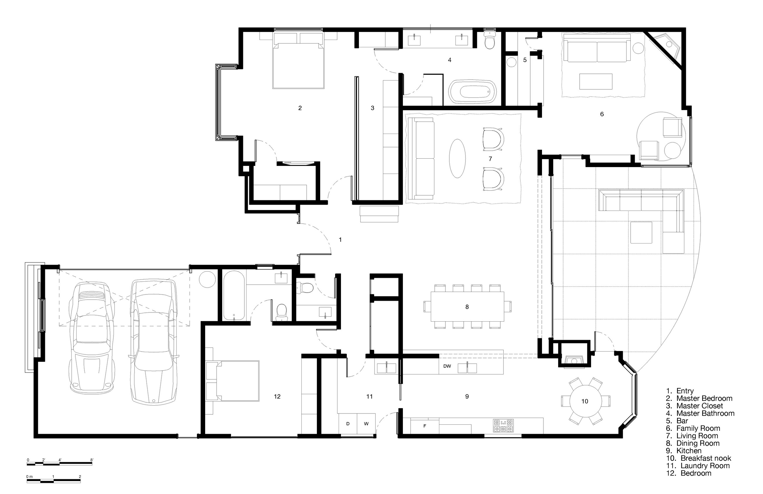 Design: Nestled in the Hancock Park neighborhood of Los Angeles, the private residence of architect Dan Brunn, AIA, became an expression of his signature style. The house was transformed from an American traditional‐style home into a minimalist retreat. The remodeling process delicately balanced a nostalgic façade while transforming the interior spaces to accommodate present‐day domestic activities with a clean, open‐air feeling.